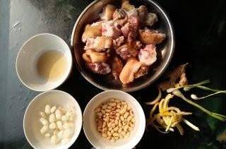 輔料:蔥2根、檸檬皮6根、薑3片、料酒1勺、黃豆20克、花生米20克