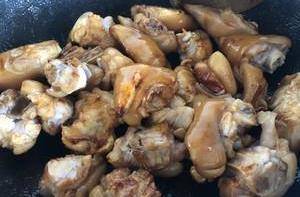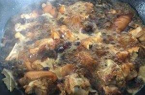 炒差不多瞭可以加入水,漫過豬蹄即可,大火煮一會兒~