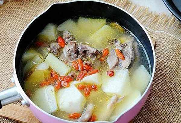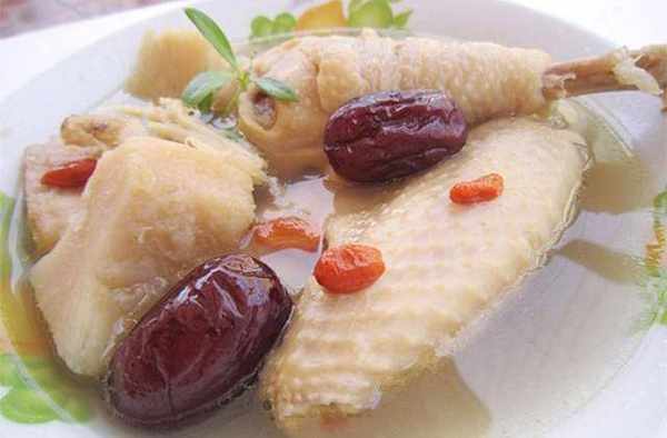雉腿1個、山藥約300克、枸杞適量、蔥半棵、薑4片、鹽1茶匙、料酒1勺,