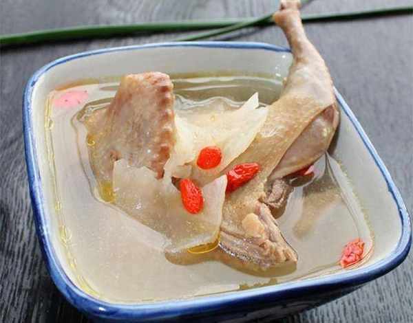 鴿子適量、生薑適量、天麻適量、枸杞適量、鹽適量、雞精適量。