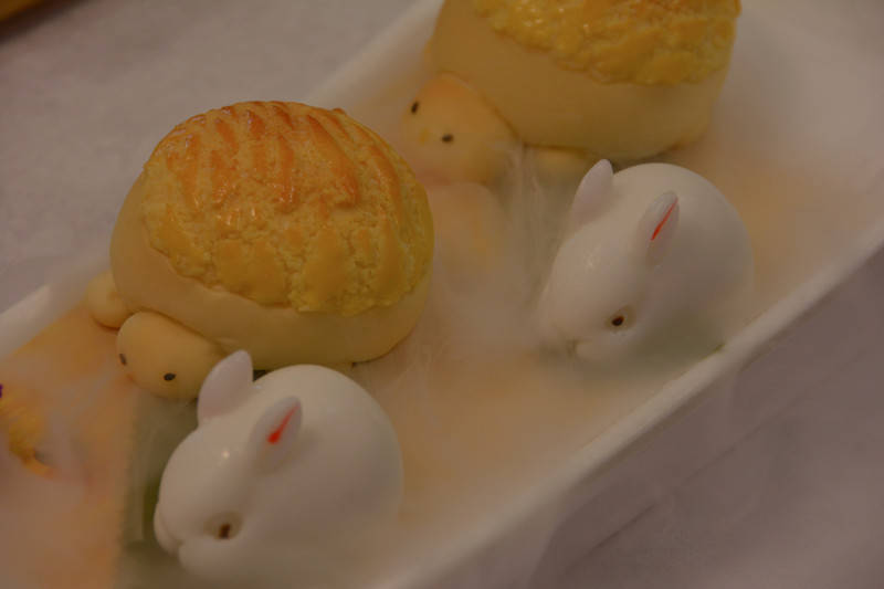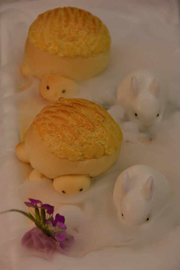 珍之寶擅長以創新手法演繹著順德味道,龜兔賽跑就是這樣一款創意點心,從點心到盤子都散發著可愛!仙意飄飄上桌來,兔子是椰汁糕,栩栩如生,Q彈,而龜龜而是傳統的酥皮包。