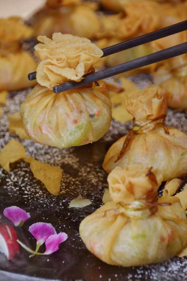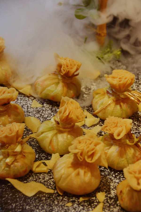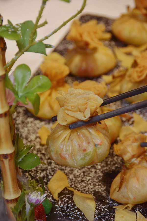 脆皮石榴球,外面是炸得香脆的石榴造型,裡面包裹節瓜粉絲蝦米,脆軟搭配。