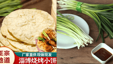 攤開小餅,放入脆生的山東本地蔥和靈魂蘸料,拿起肉串一擼一包,這樣的好“淄”味,自然讓不少年輕人蠢蠢欲動,爭相嘗試。