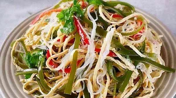 材料:粉絲、水發海帶、香菜段、蔥花、薑末、蒜泥、鹽、味精、香油、白醋、醬油。