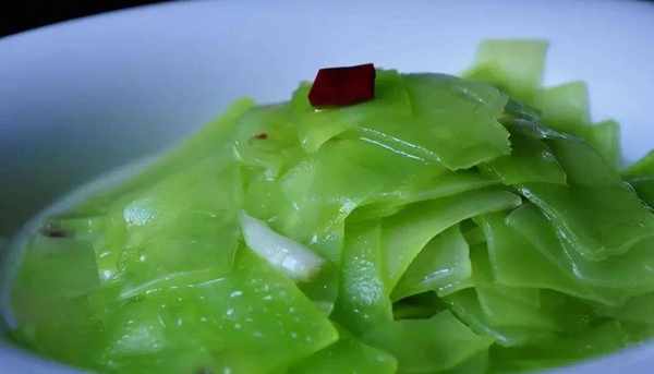1. 萵筍去皮洗凈,切大刀片,焯水,撈出,瀝幹,裝盤。