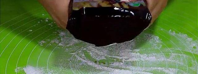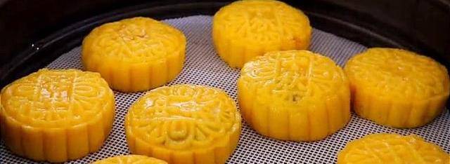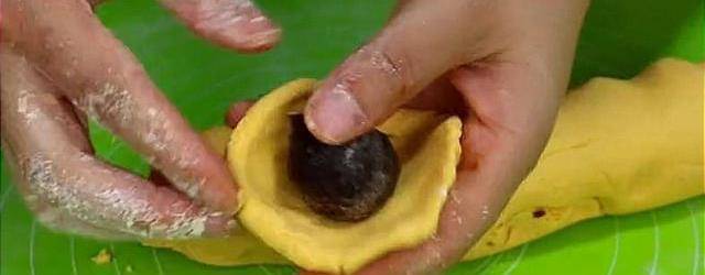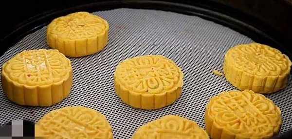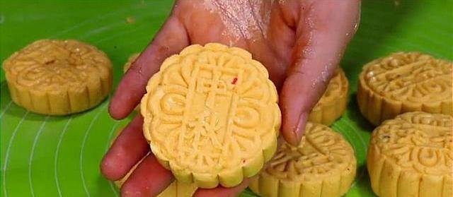 做好以後放到月餅模具裡,把它壓成月餅的形狀。