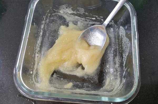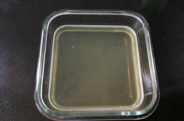 取一個方形的碗,倒入200ml的菠蘿汁