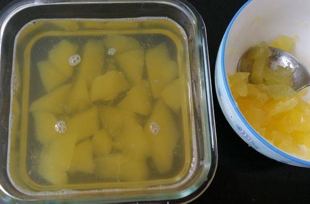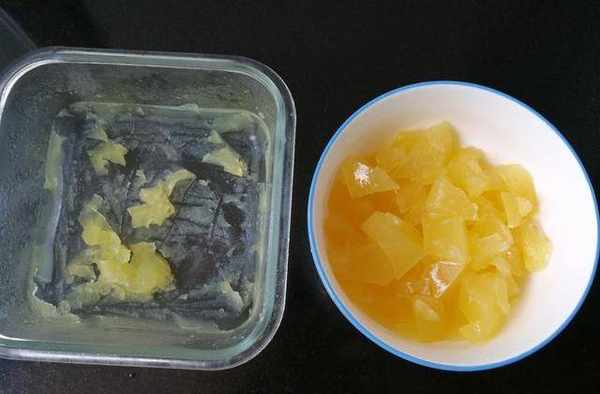 把菠蘿凍晾涼後放冰箱待其凝固後取出來