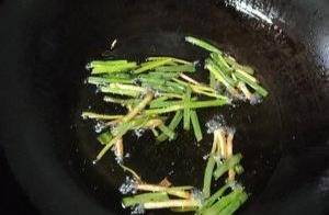 時間到瞭,雞胸肉已經醃制好瞭,用筷子將裡面的蒜片挑出來。下面往鍋裡加入適量的食用油,把蔥和薑放入鍋裡面,然後用筷子不停的翻動,用筷子慢慢炸,先把蔥和薑的香味炸出來,用這個油來煎雞肉就會特別的香,煎至蔥薑微微的變色就撈出來不要扔掉放到碗裡面備用。