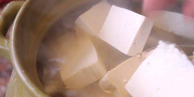 6、把湯和肉全部倒入砂鍋中,再把豆腐打進去。蓋上蓋子小火燉10分鐘。燉好之後,加入適量的鹽調味,再撒少許胡椒粉,最後撒上蔥花。