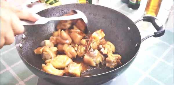 4.倒入豬蹄,攪拌均勻,讓所有的豬蹄都沾滿糖色