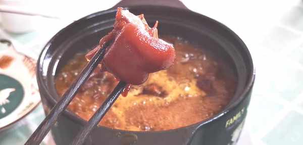 【向往的生活】中,黃磊老師做瞭兩次的黃酒燉豬蹄,他做的這道黃酒燉豬蹄和他拿手的紅燒肉有異曲同工之妙,使用陳年的黃酒來代替清水,一滴水都不加!燜出來的豬蹄色澤紅潤,甜絲絲的,再配上米飯,用湯汁澆在飯上,那叫一個香啊~絕配!
