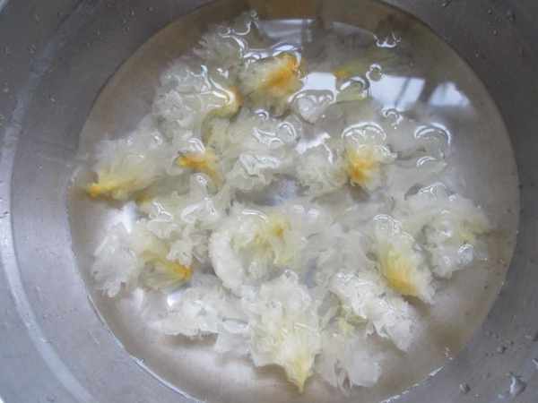 銀耳用開水充分泡發開。銀耳的價格並不是很貴,家家戶戶吃得起,銀耳的營養價值很高,是一味很棒的滋補食材,滋潤而不膩滯,常吃可補脾開胃、益氣清腸、安眠健胃、補腦、養陰清熱、潤燥等,對於陰虛火旺不受參茸等溫熱滋補的人作用更好。秋後身體容易燥熱,可以經常的吃點銀耳。