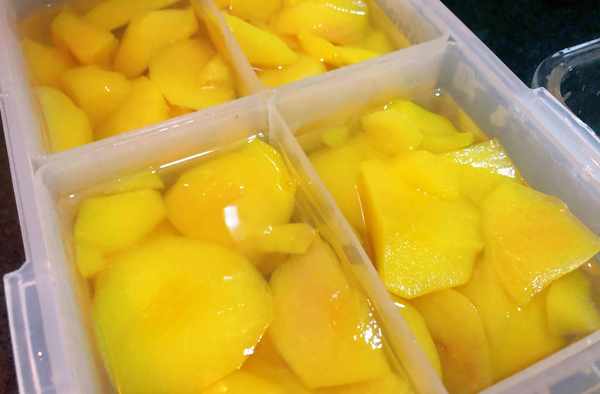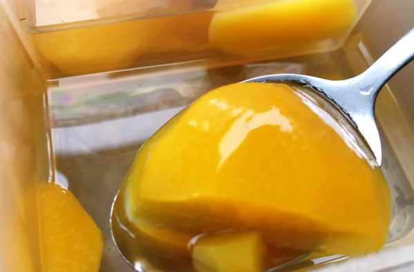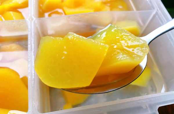 經過一夜的冷藏,油桃罐頭更是香甜可口。