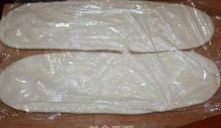 6、用搟面杖把面片搟成寬約12厘米,厚度約為7毫米的長片狀。 蓋保鮮膜靜置15分鐘。