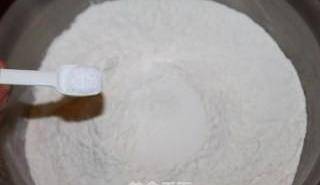 1、將鹽加入到面粉中,攪拌均勻。