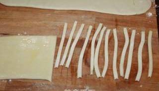 8、將面片切成不到1厘米的細條,再靜置5—10分鐘。