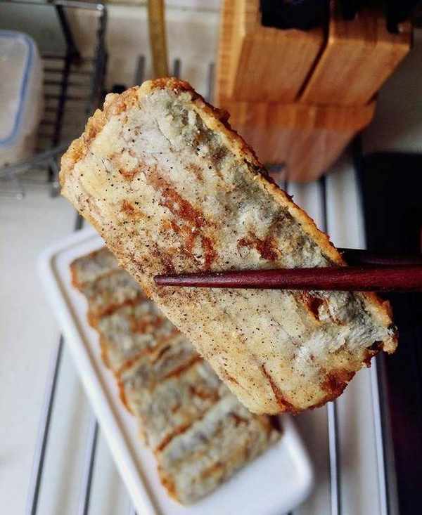 帶魚洗凈剪去魚翅,除內臟和魚血,剪成合適的帶魚段加適量食鹽,再加入適量的料酒淀粉裝進塑料袋裡,帶魚裝進袋子裡輕輕搖一搖,抖去多餘淀粉,帶魚段放在盤子裡平底鍋放適量的油放入帶魚段,一面煎黃再翻另一面煎透就停火,帶魚段撈出控油擺盤撒適量椒鹽