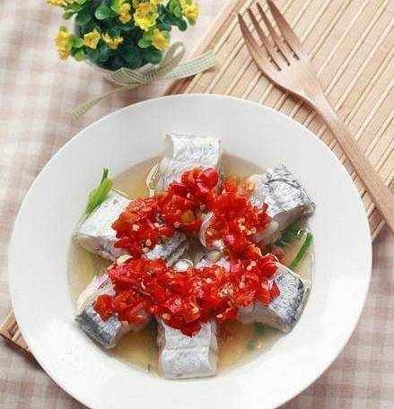 將帶魚清洗幹凈,切小塊,盤底鋪上蔥薑將魚鋪在蔥薑上面淋上一圈料酒,再淋上一圈色拉油最後蓋上一圈剁辣椒(瓶裝的,超市菜場都有賣的)上鍋蒸7分鐘左右即可開吃拉。建議大火將水燒開後再將盤子放入蒸