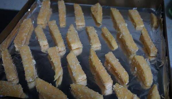 烤盤鋪錫紙,把薯條放上去,這麼一塊紅薯,能烤兩盤