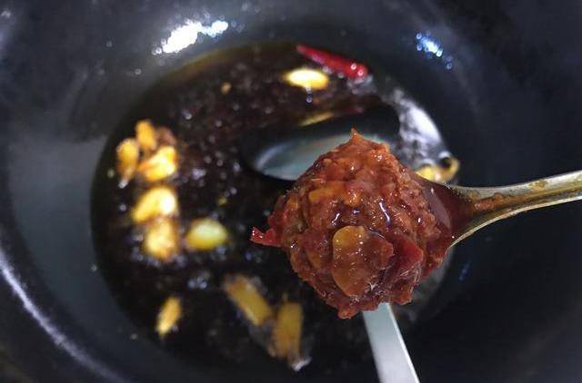 加入一勺豆瓣醬,繼續翻炒30秒