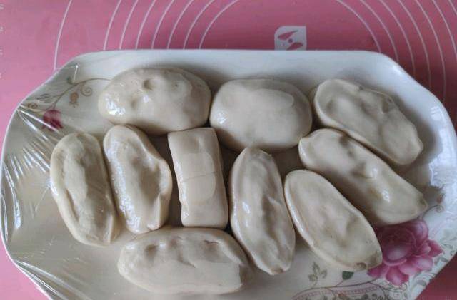 將面劑子放在盤子裡,盤子中刷油,使面劑子均勻沾上油後,密封醒面40分鐘左右!