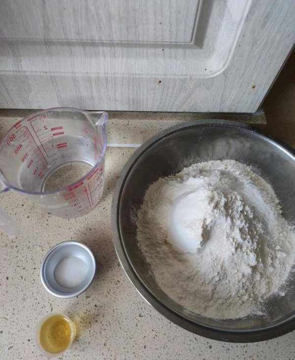 普通面粉500克,鹽5克,溫熱水300ml,油10ml
