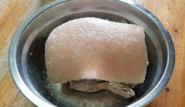 10.泡發好的五花肉,可以根據自己的喜好切開,拌上自己調配的醬汁而被好吃!