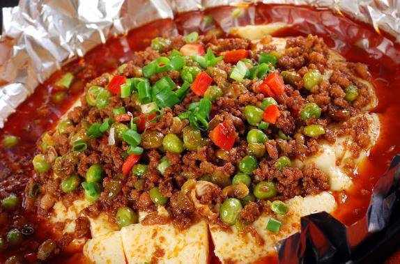 1、肉沫豆腐。先炒蒜,再放醬油,再加黃豆,等到湯濃的時候,再加紅辣椒,把豆腐切成薄片蒸好,然後平鋪下來,配料什麼放在上面就好瞭。