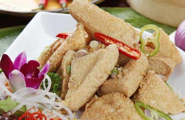 3、脆皮豆腐。豆腐,雞蛋,青椒,蒜醋生抽,花生油。過重的有先加著,然後把豆腐放在裡面煎,把配料弄成醬汁,豆腐可以沾著吃。