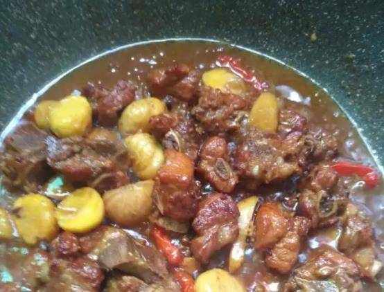 第六步:等209分鐘之後加入板栗,小火繼續燜制20分鐘左右。
