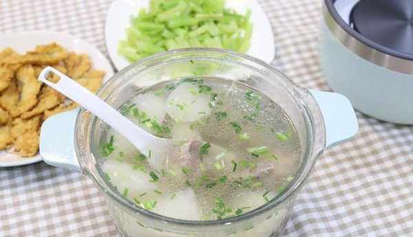 4.時間到瞭後,在出鍋前放少量的鹽進行調味,一碗滋補身體的蘿卜排骨湯就做好瞭,營養又美味,秋季喝一碗,渾身都暖洋洋的,特別滿足。