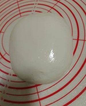 將350克溫水中加入2克鹽,加入500克面粉揉成光滑的面團(此處我用的面包機揉面),手上和案板上抹少許油,將面團取出放在案板上;