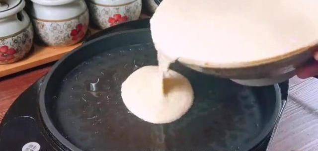 加入三克的酵母,加入200克的面粉。用筷子給它攪勻,喜歡吃甜口的可以加一些白糖,攪拌機完全沒有幹面粉,蓋上蓋放面一個小時,面發好取兩克的小蘇打,少加一點溫水,用小勺給它攪一下,讓小鋤娃給它化開。倒入發好的面糊裡,面發好裡面全是小氣泡,把小蘇打給他攪勻,像小竹筏更旋轉,還能去酸味,取店秉承娛樂180度,刷一層薄油,倒入一點面湖,