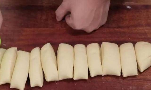 5.當面團瘦下來之後搓成長條,分成大小均勻的劑子。