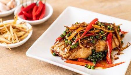1、石斑魚肉刺少,肉層厚,最適合炒魚片,可在超市或菜市場買到,除石斑魚外,也可用鯛魚片。