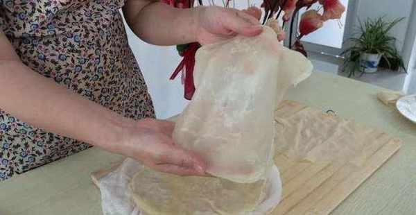 11.面皮蒸好以後,取出,稍微放涼後,一張張的揭開。