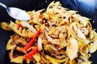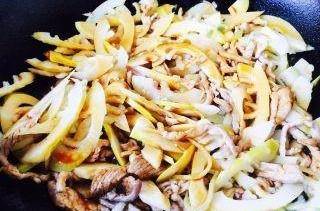 10.放入肉絲和春筍。