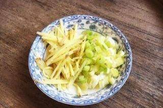 7.準備好薑絲和蔥花。
