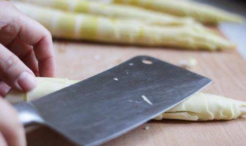 筍洗凈後用刀拍扁。