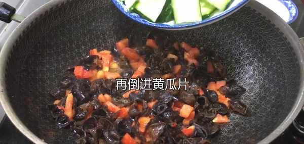 再次起鍋放油,倒進西紅柿炒出紅汁,加進木耳一起翻炒,再倒進黃瓜片翻炒一下,放適量鹽,繼續翻炒一下,煎好的雞蛋塊裝盤,美味的黃瓜炒木耳就做好瞭,爽脆可口,非常好吃。