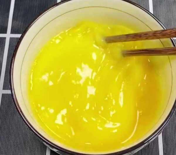 3、空碗內打入兩個雞蛋,攪散。