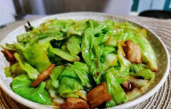 第五步:放入包心菜翻炒斷生,加入適量鹽和生抽即可出鍋食用。