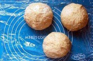 波蘭種所有材料混合均勻,蓋上保鮮膜在冰箱冷藏過夜(16~72小時),或者室溫3~4小時。高高漲起再回落的狀態就可以。混合高筋粉、全麥粉和乳清,室溫浸泡3小時。混合除瞭鹽和黃油之外的所有材料,稍微揉勻之後加鹽,擴展階段後加黃油,揉至接近完全階段。全麥粉比例較高,不用揉到很薄的膜,否則長不高。蓋上保鮮膜發酵至兩倍大按壓排氣均分成3份,滾圓後蓋上保鮮膜松弛15分鐘。