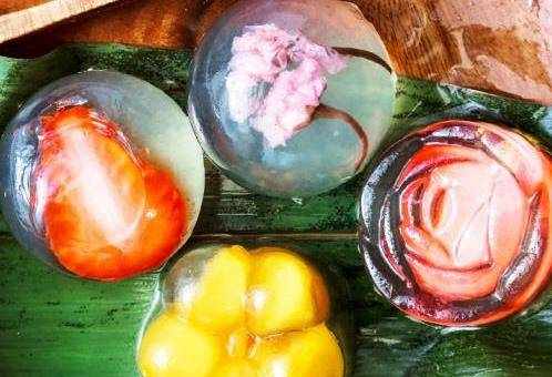 做好之後比我們在外面買的果凍要好看太多瞭,簡直就是藝術品一般的存在。用這種白涼粉做果凍,非常的簡單,先將大約20克左右的白涼粉倒入到冷開水當中,攪拌均勻至裡邊沒有幹粉狀。然後在火上煮大約550克的開水,煮沸之後,倒入剛才攪拌均勻的涼粉當中。