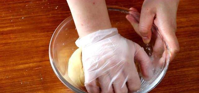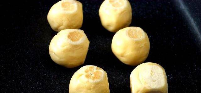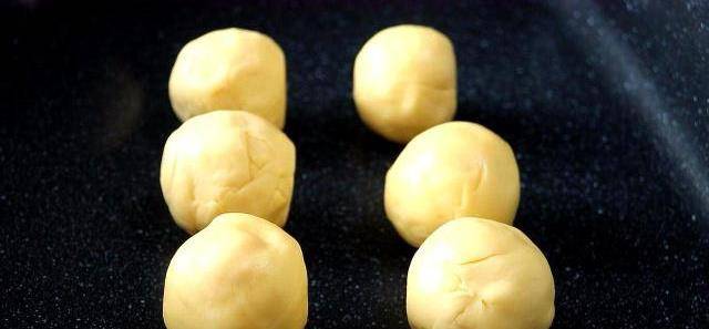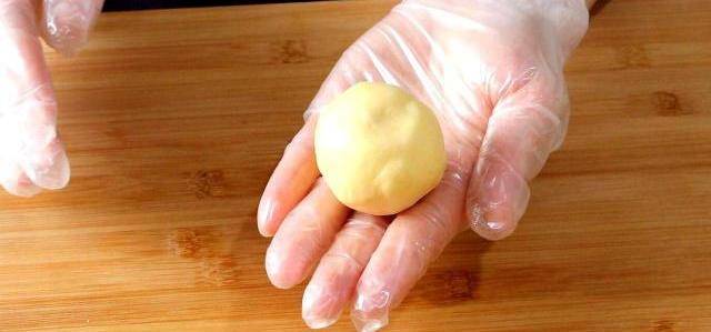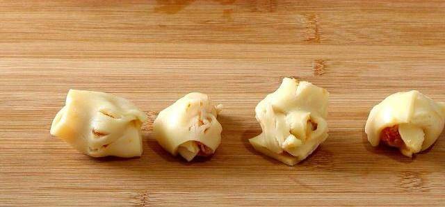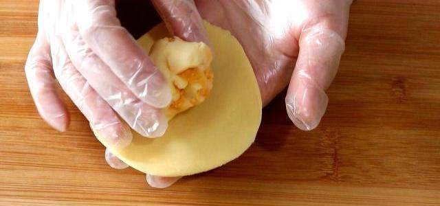 放入一顆芝士餡兒,像包湯圓一樣,把餡包在裡面,註意:封口要封嚴實瞭。