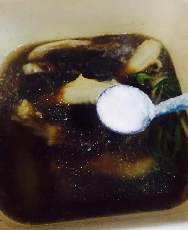 5.然後把十克的醬油給放進去,再把鹽也給放進去。