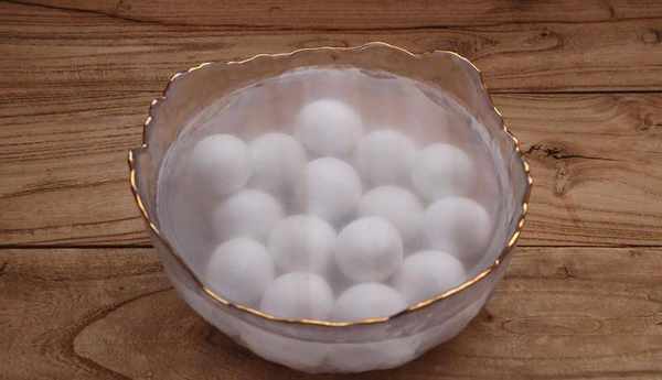 取出適量的速凍湯圓,放入涼水中,水量要足夠沒過湯圓。浸泡30秒鐘後迅速撈出控水。經過這一步的處理,煮出的湯圓不容易破皮露餡。