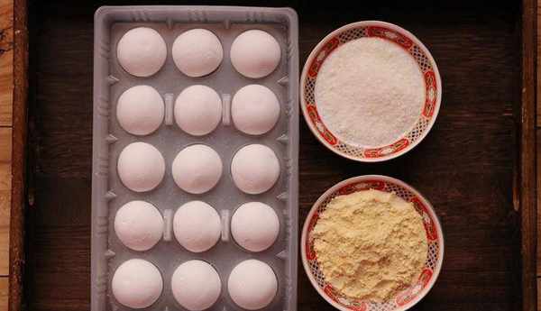 食材:湯圓、黃豆粉和椰蓉