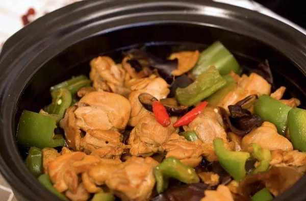 食材:去骨雞腿肉約650克、幹香菇8朵、青椒1條、蒜頭4瓣、薑8片、辣椒1/2支